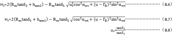 錐齒輪的邊疆接觸區爲稍帶錐度的帶狀形。然而,在大多數情況,可較好地用平行的帶狀接觸區來近似,連同兩個切向速度的重合並(bìng)在方向上與長軸垂直,尤其是當曲率半徑的正確定值和赫茲接觸帶已知時,可直執著(zhe)使用權原來的公式(A.1)。爲瞭方便起見,公式可以被改寫,即用直線來近似“8”字作用線 ,並(bìng)且系數用錐齒輪的一般量來表達。