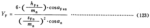 式(144)适用於标準或變位的直齒輪和斜齒輪 。大、小輪的YFa應分别確定。